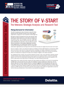 The data insights team at IVMF team does more than just field data requests. Our team works to not only collect the data but aggregates it to provide actionable insights and change that impact the lives of veterans and their families.