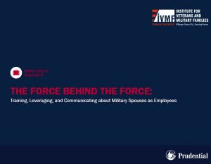 Thus, the Institute for Veterans and Military Families (IVMF), as part of its broader employment research efforts, and with the generous financial support and collaboration of Prudential Financial, Inc., is exploring the topic of military spouse employment. This “Force Behind the Force” series includes a collection of complimentary products geared toward educating employers, hiring managers, and human resource professionals interested in hiring and retaining military spouses.